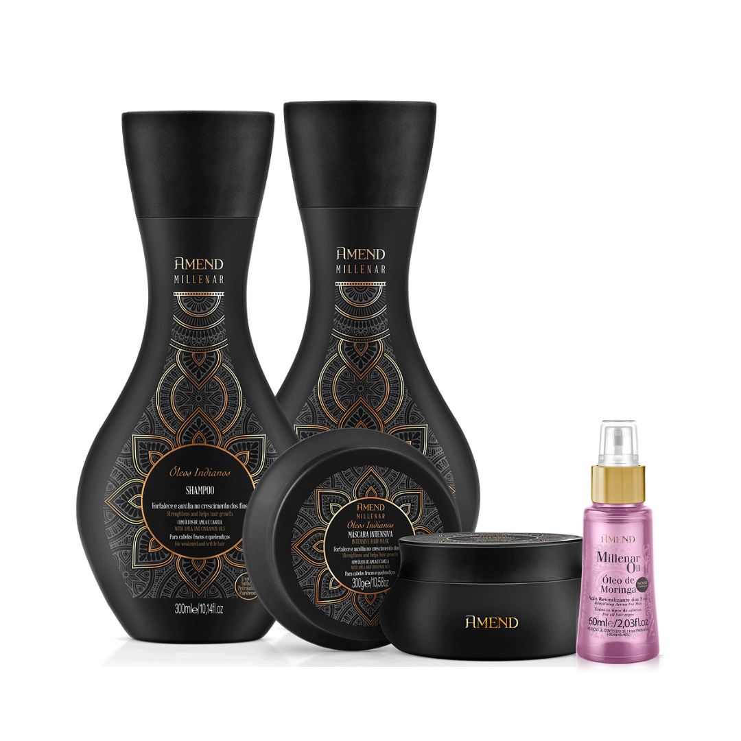 Amend Millenar Óleos Indianos Shampoo 300ml + Condicionador 300ml + Mascara 300ml + Millenar Oil Moringa 60ml ÚNICO