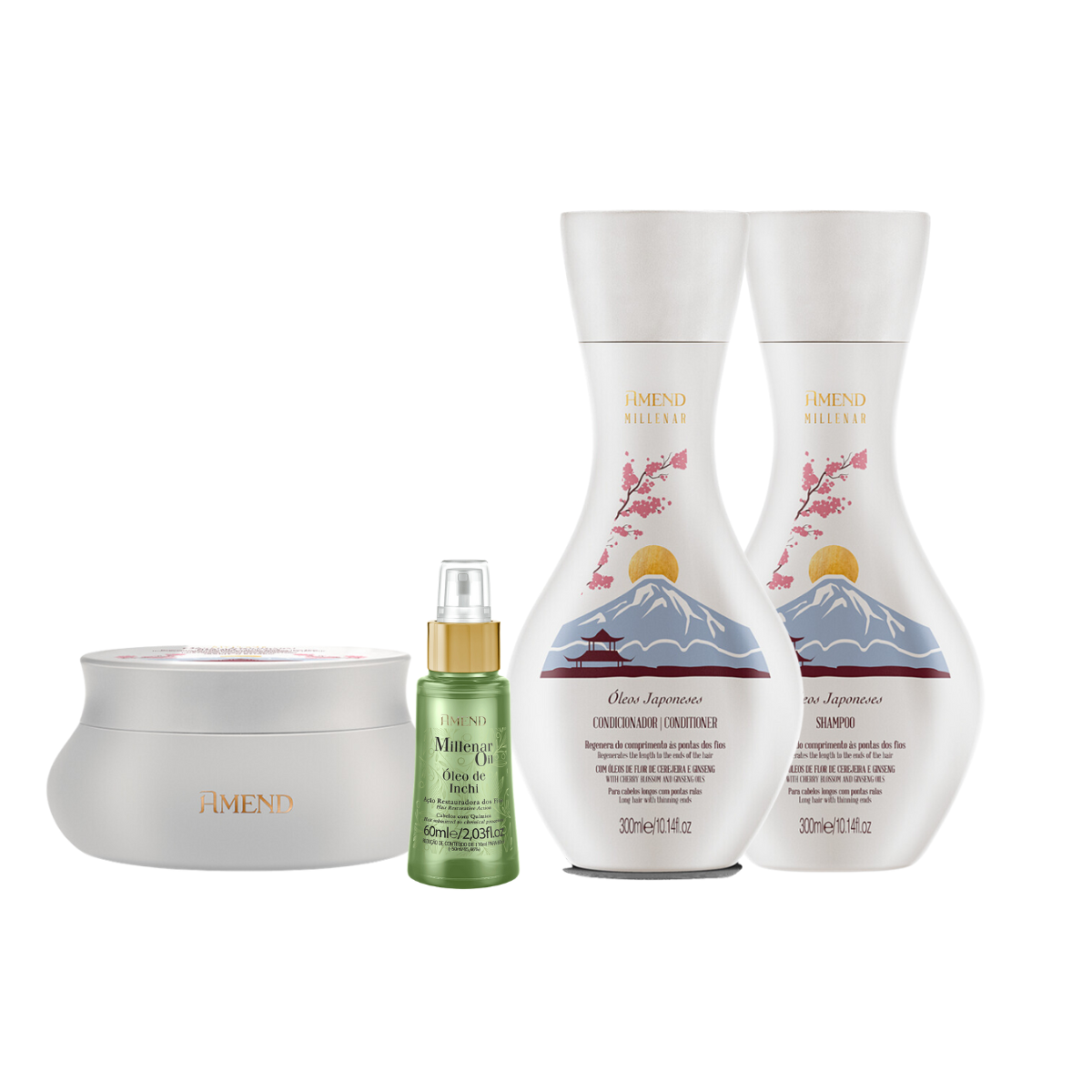 Amend Millenar Óleos Japoneses Sh 300ml + Cond 300ml + Masc 300ml + Millenar Oil Inchi 60ml ÚNICO