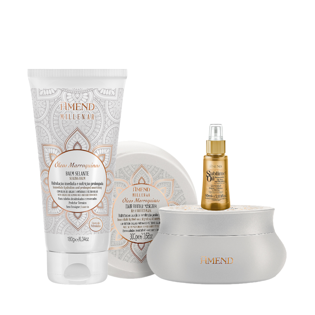 Amend Millenar Óleos Marroquinos Masc 300ml + Balm Selante 180ml + Sublime Oil 60ml