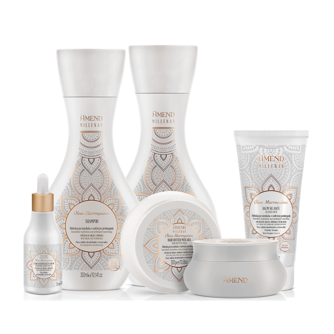 Sobre o Amend Millenar Óleos Marroquinos Sh 250ml + Cond 250ml + Masc 300ml + Balm Selante 180ml + Óleo Elixir Nutritivo 75ml