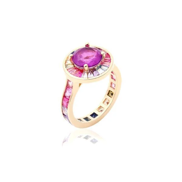 Anel Aro Cristais Coloridos Redondo Fusion Ametista Semijoia