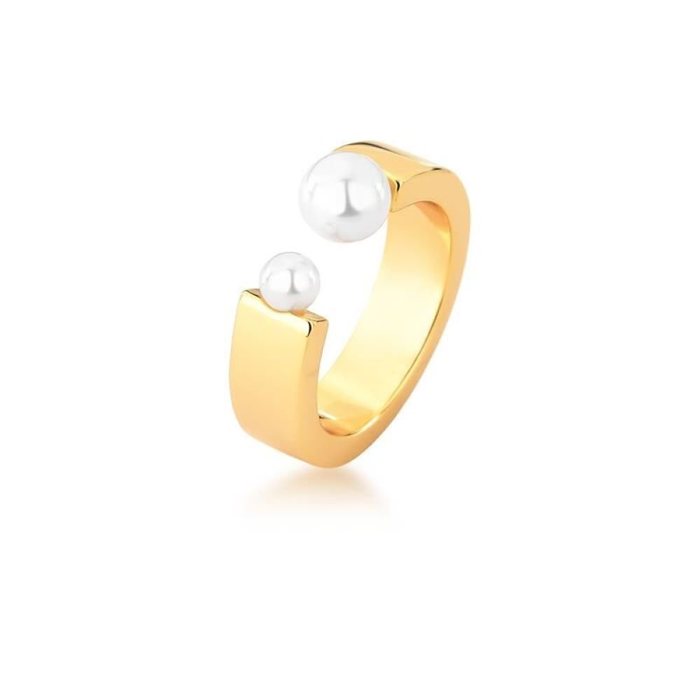 Anel Aro Liso com Detalhe Duas Mini Pérolas Shell Banhado a Ouro 18K Semijoia Ania Store