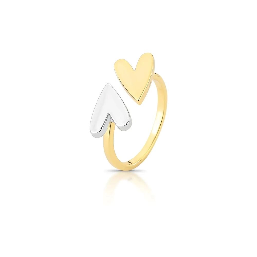 Anel Dois Coração Semijoia Dois Banhos Ouro 18k e Ródio Ania Store