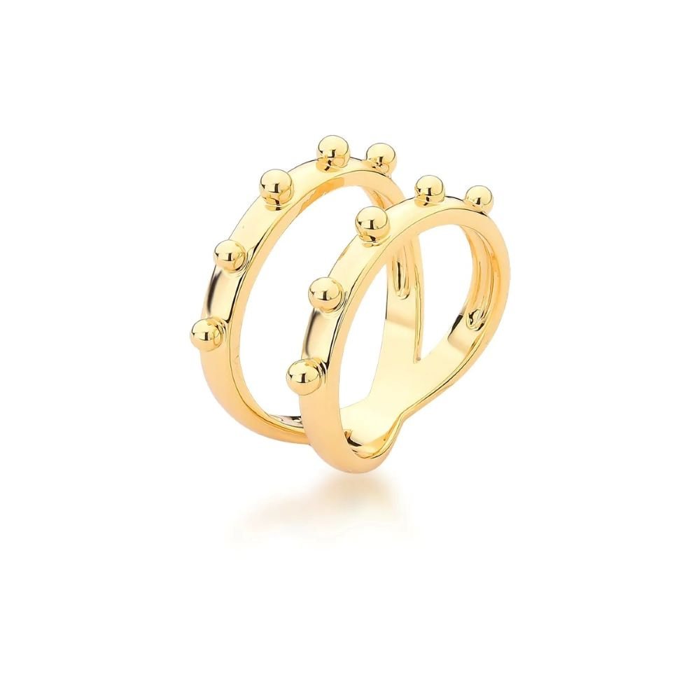 Anel Duplo Mini Esferas Semijoia Banhado a Ouro 18K Ania Store