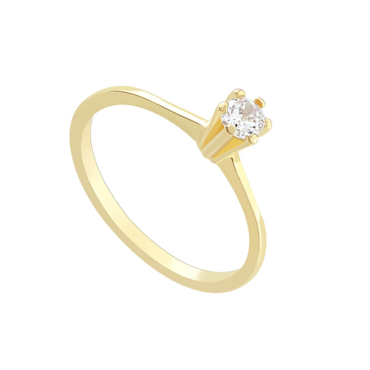 Anel Folheado a Ouro 18k Solitário Base Comprida Zircônia M