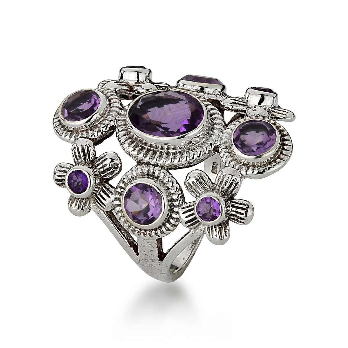 Anel em Prata 925 com Ametistas Naturais: Elegância única para mulheres empoderadas. Descubra o significado profundo e adorne-se com a serenidade das ametistas. Perfeito para ocasiões especiais ou para elevar o dia a dia. Adquira sua expressão de autenticidade agora!
