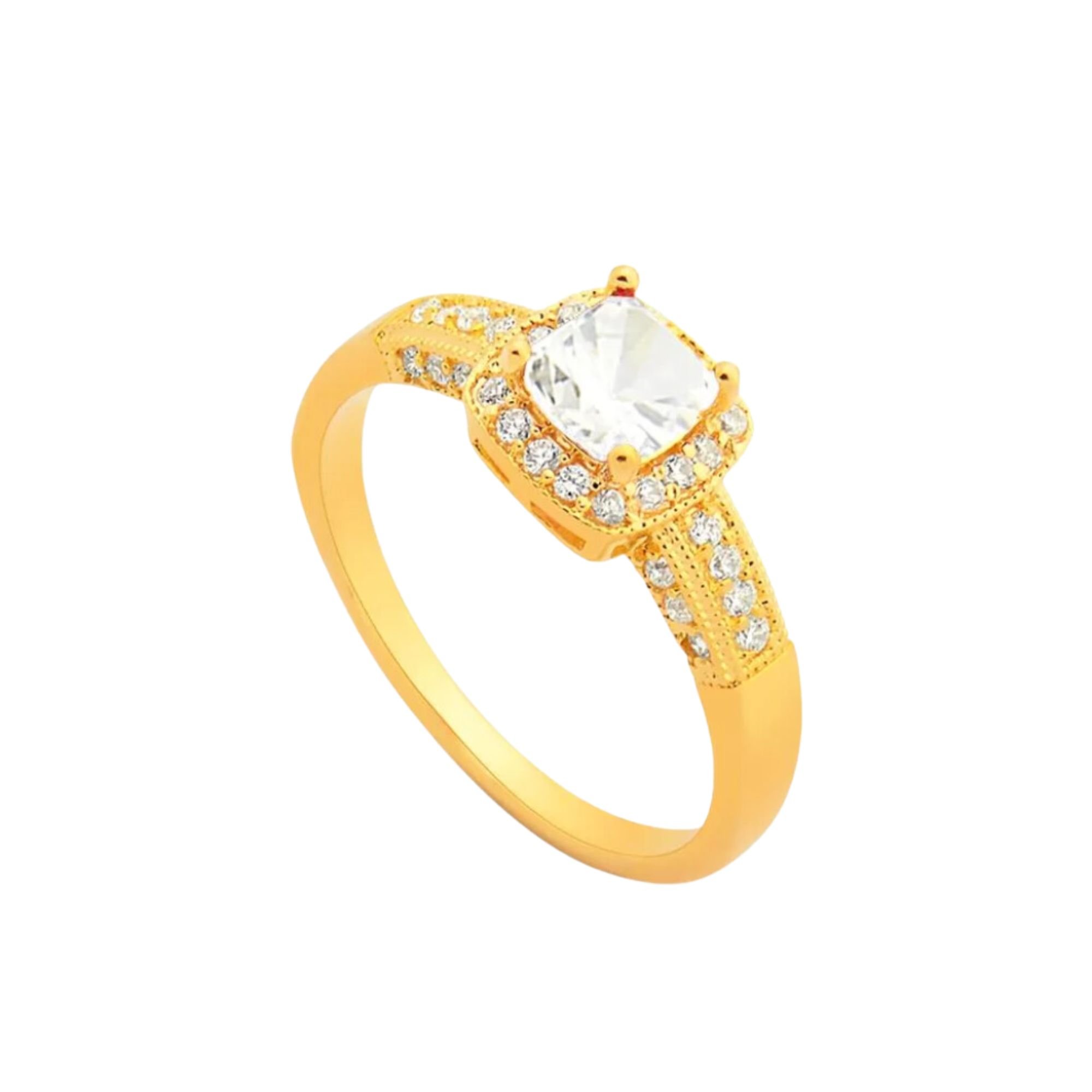 Anel Pedra Quadrada com Zircônias - Banhado em Ouro 18k Dourado