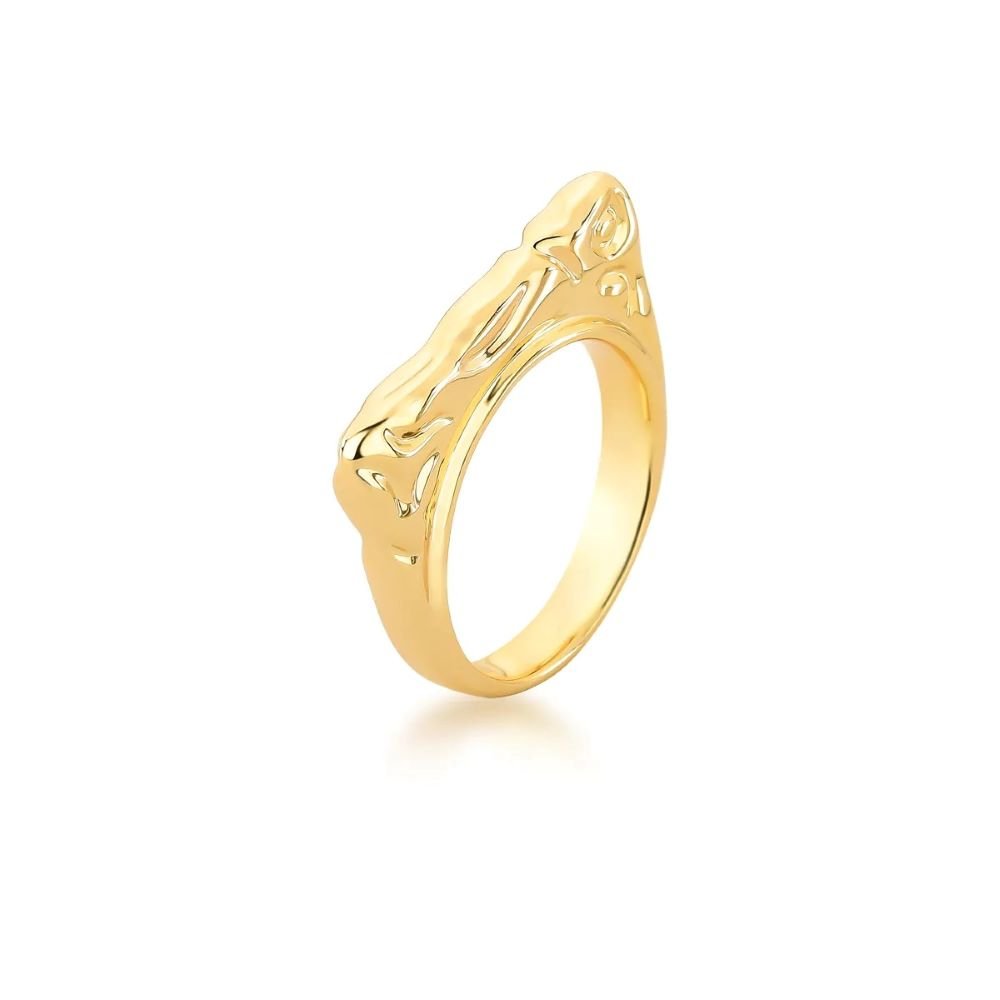 • Anel Sextavado Amassada Banhado a Ouro 18K Ania Store