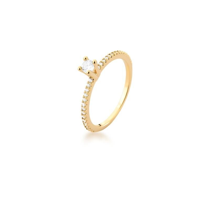 Anel Solitário com Cristal Cravejado Semijoia Banhada a Ouro 18K Ania Store