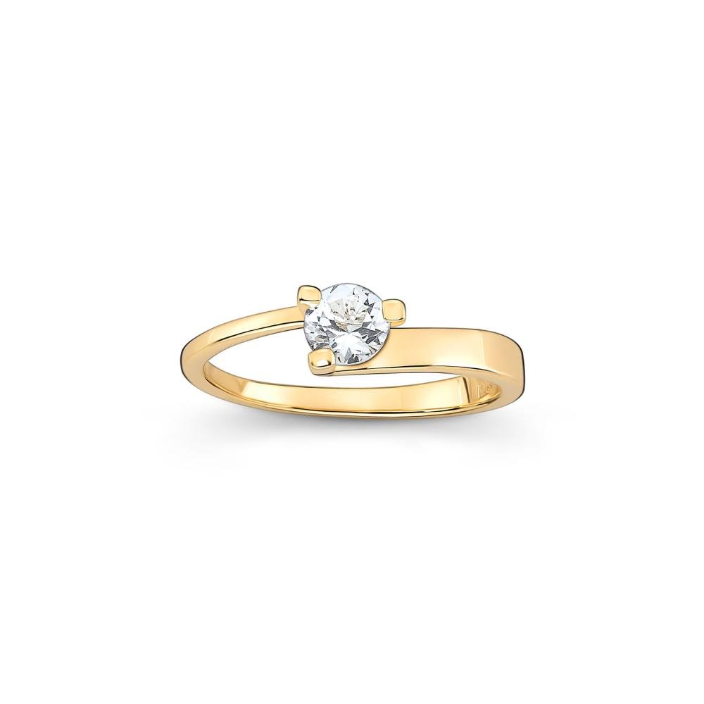 Anel Solitário com Topázio Incolor em Prata 925 com Banho de Ouro Amarelo 18k
