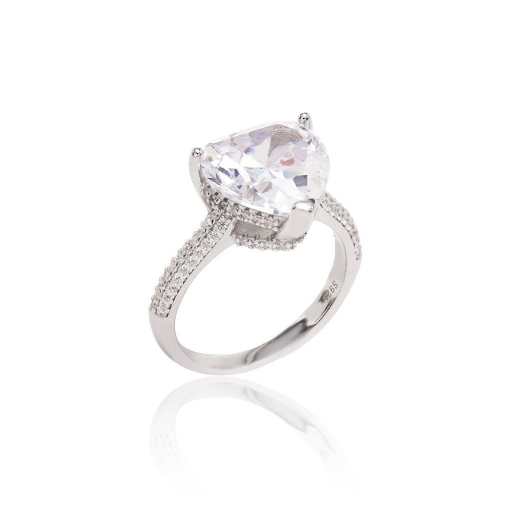 Anel Solitário Zircônia Coração Aro Cravejado Joia Prata 925 Prata