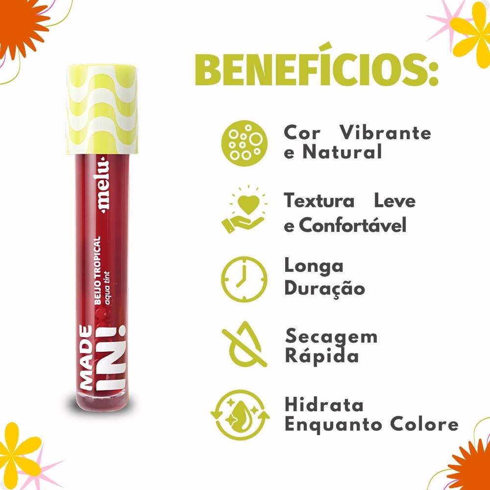 Descubra o Aqua Tint Made In! Melu Beijo Tropical Laranja Com Acerola RR-l6602-3, a essência da versatilidade na sua rotina de maquiagem. Este produto inovador da MELU foi desenvolvido para proporcionar um toque de cor vibrante e natural, ideal para quem busca praticidade e beleza em um só item. Sua fórmula exclusiva é enriquecida com princípios ativos que garantem hidratação e revitalização, cuidando da sua pele enquanto realça sua beleza.