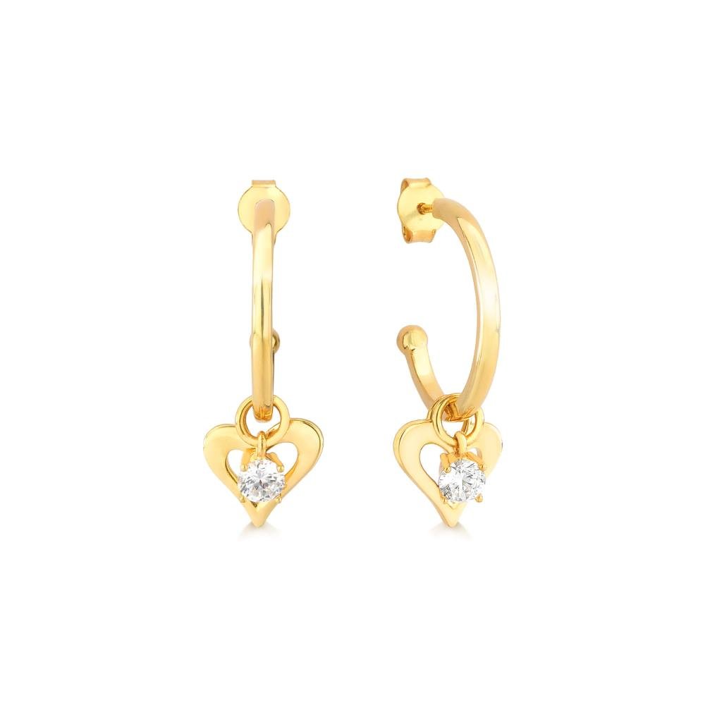 Argola Coração Cravejado em Prata 925 com Banho de Ouro Amarelo 18k