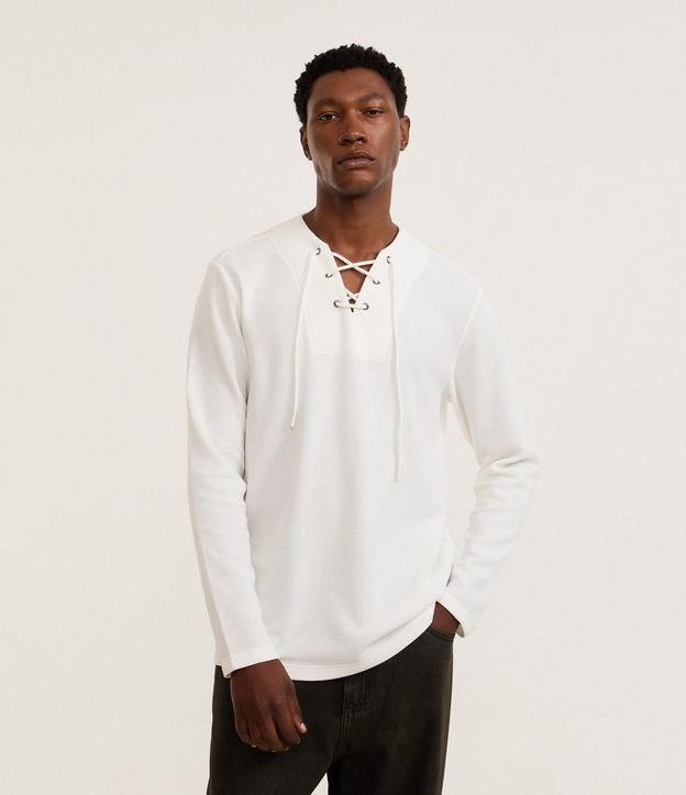 Bata Comfort Texturizado com Gola V e Amarração Branco