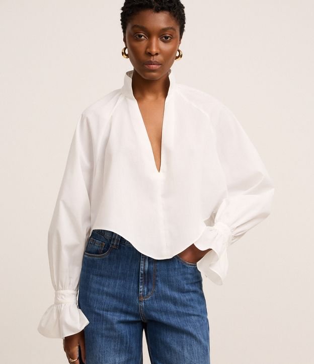 Bata em Tricoline com Barra Assimétrica e Manga Longa Sino