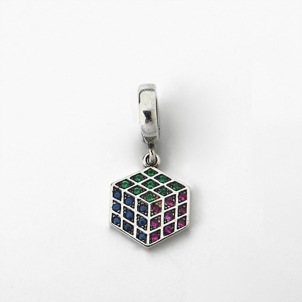 Berloque Bali Cubo Mágico Cravejo Zircônias Prata 925