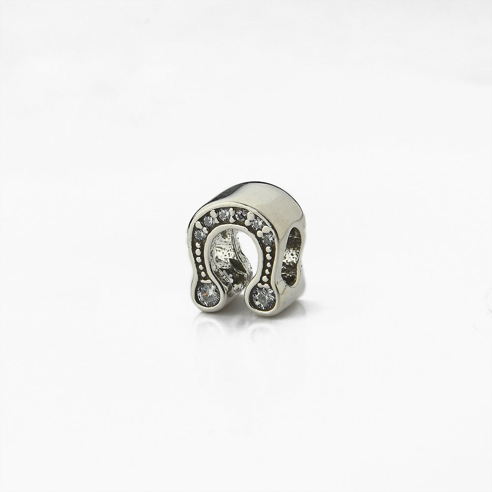 Berloque Bali Espaçador Ferradura Cravejado Zircônias em Prata 925: Um toque de sorte e glamour para sua pulseira. Feito com Prata 925 e detalhes cravejados de zircônias cintilantes. Adicione estilo e significado à sua coleção de berloques com este acessório encantador.