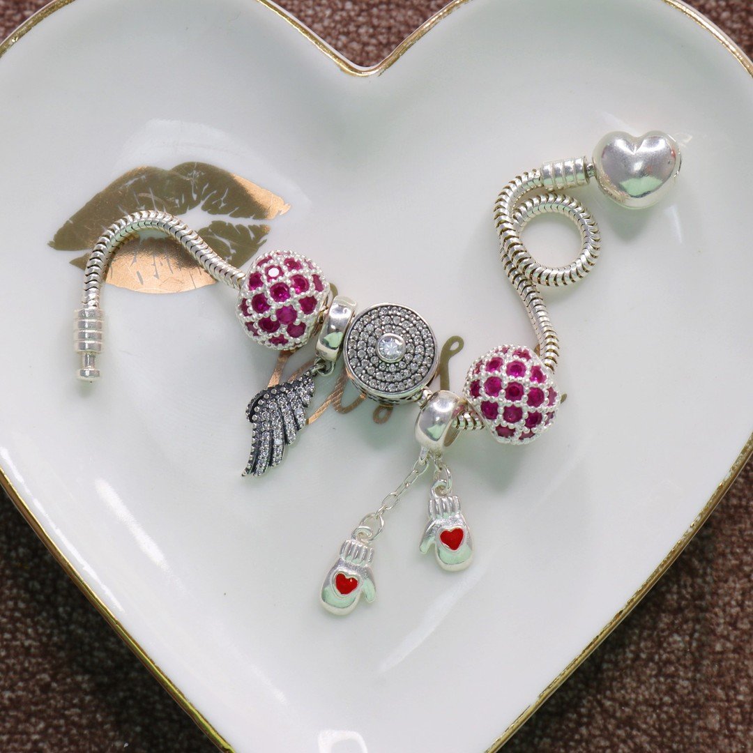 Berloque no formato de duas luvas com um meigo coração esmaltado em vermelho, sua coleção merece. Confeccionado em Prata 925.