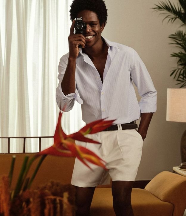 Bermuda masculina confeccionada em liocel mais sustentável. Possui cós com passante, fechamento tradicional, pregas, bolsos e alfaiatada.