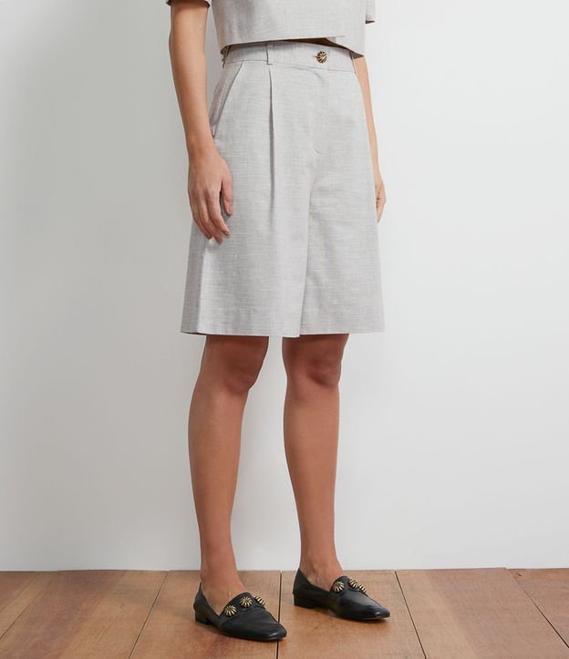 Bermuda Alfaiataria Alongada em Oxford com Pregas Frontais e Botão Pitanga