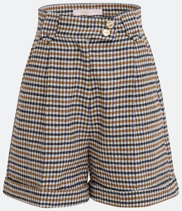 Bermuda Alfaiataria com Cós Largo e Estampa Xadrez Multicores