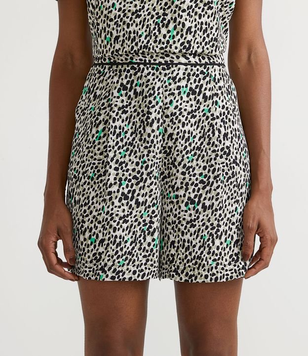 Bermuda Alfaiataria em Crepe com Cós Elástico e Estampa Monet