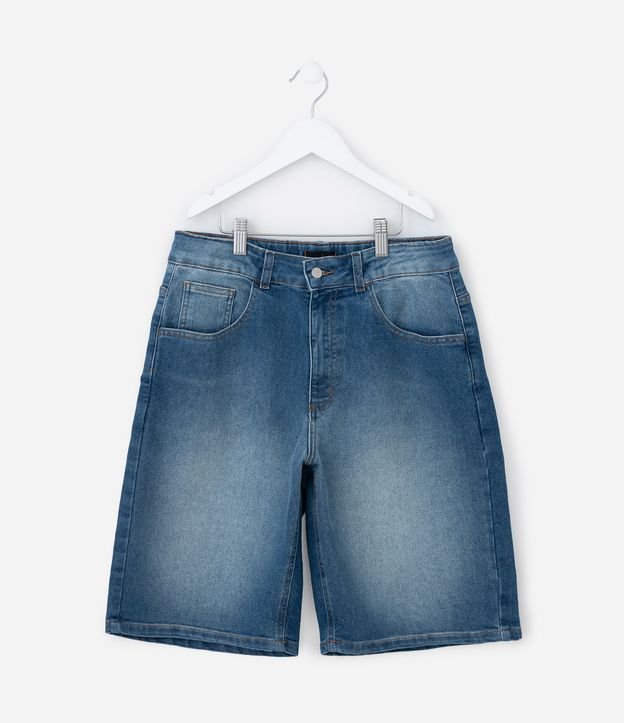 Bermuda Baggy Infantil em Jeans Dirty - Tam 5 a 14 anos Azul Médio