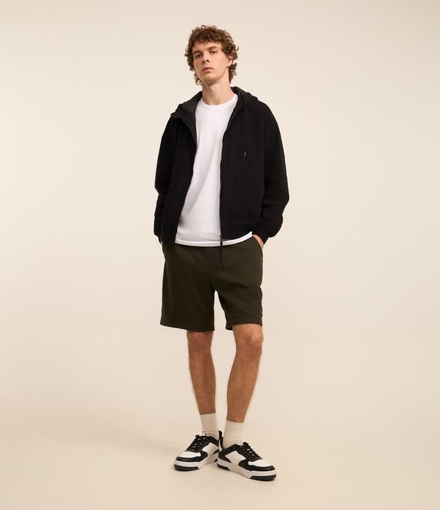Bermuda Básica em Moletom com Cós Elástico Verde Escuro