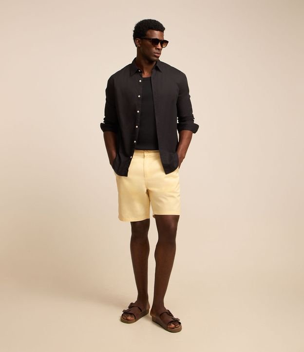 Bermuda Básica em Sarja com Passantes e Bolsos Amarelo Claro