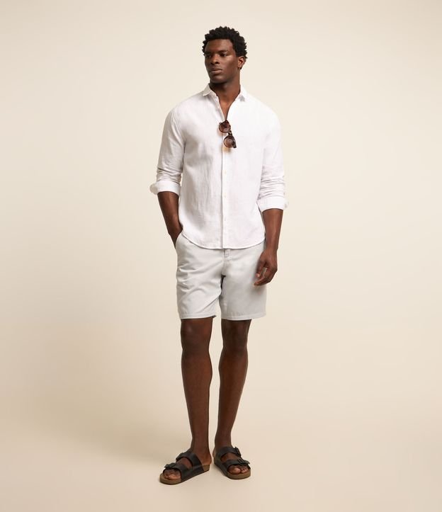 Bermuda básica confeccionada em sarja com passantes na cintura além de fechamento tradicional por botão e zíper e bolsos.