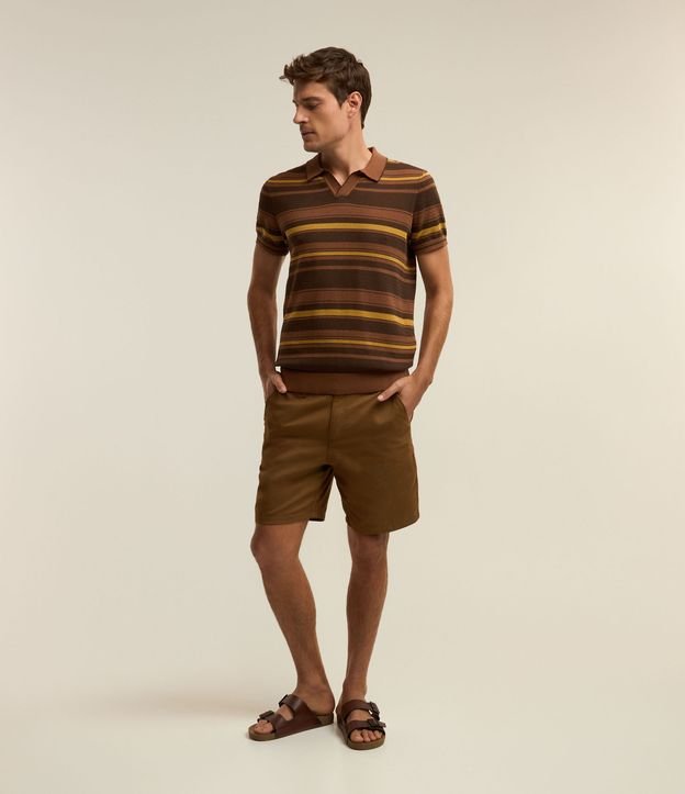 Bermuda Básica em Sarja com Passantes e Bolsos Marrom Caramelo