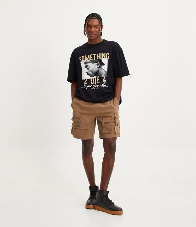 Bermuda Cargo com Cós Elástico e Bolsos Táticos