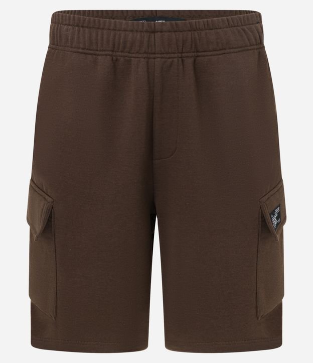 Bermuda Cargo em Moletom French Terry com Estampa Localizada Marrom