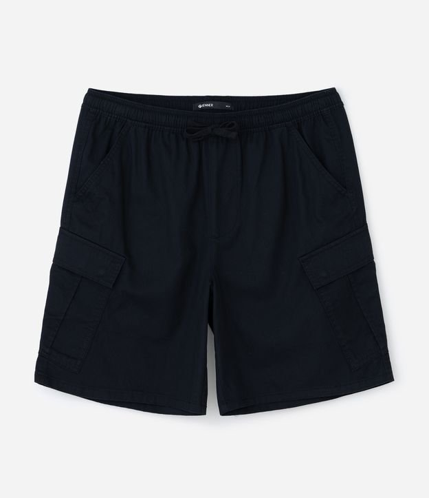Bermuda Cargo em Sarja Liso com Cós Elástico Preto