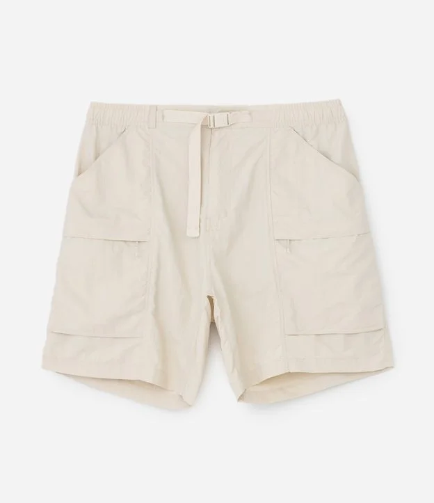 Bermuda Cargo em Tecido Tecnológico Lisa com Cós Elástico e Cinto Bege
