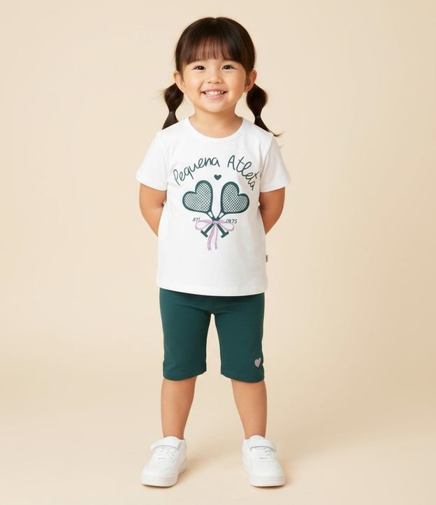 Bermuda Ciclista Infantil em Ribana com Estampa Coração - Tam 1 a 6 Anos