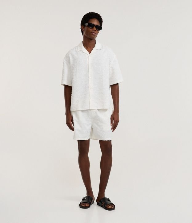 Bermuda com Cós Elástico Detalhes Navalhados e Textura Branco