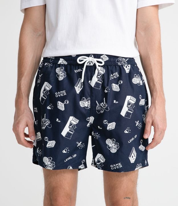 Bermuda com Cós Elástico e Estampa Geek Gamer