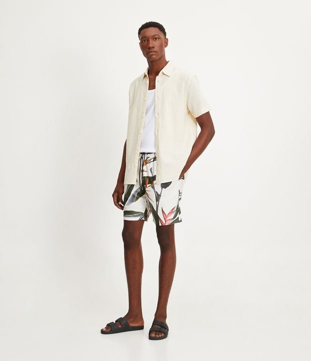 Bermuda de Banho com Cós Elástico e Estampa de Folhagem