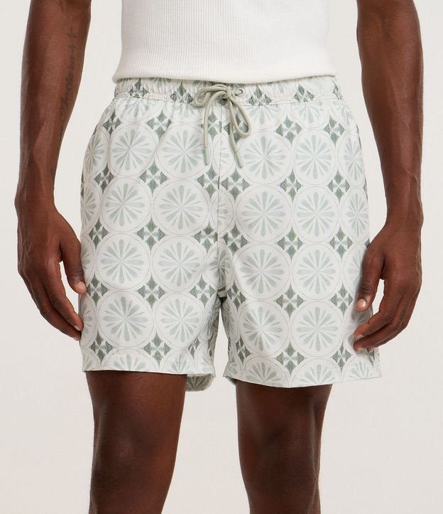 Bermuda de Banho em Microfibra com Estampa Azulejo Verde