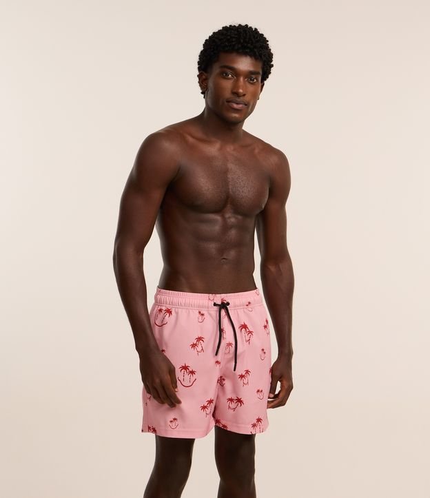 • Bermuda de Banho em Microfibra com Estampa de Coqueiros Rosa 1