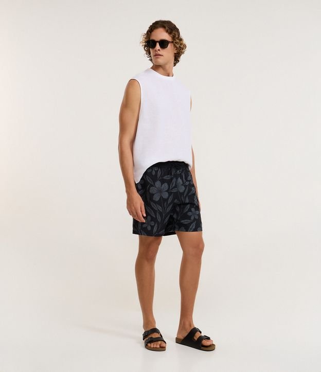 Bermuda de Banho em Microfibra com Estampa Floral Preto