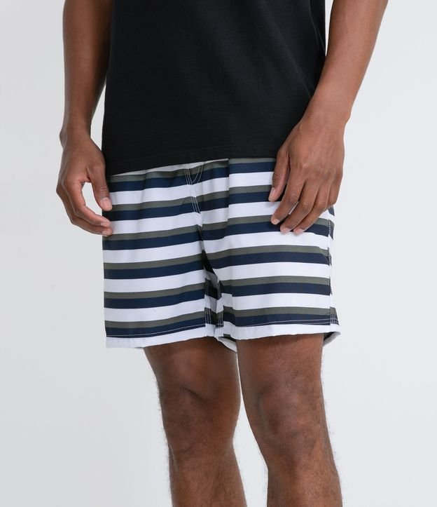 Bermuda de Banho em Microfibra com Cós Elástico e Estampa Listrada