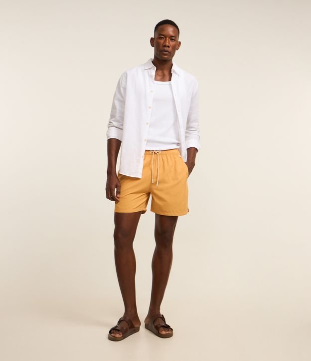 Bermuda de Banho em Peach Touch com Cós Elástico Amarelo