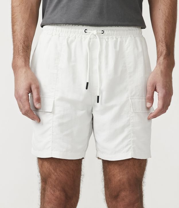 Bermuda de Banho em Poliamida com Amarração e Bolsos