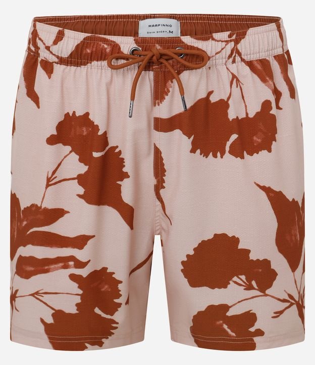 Bermuda de Banho em Ripstop com Estampa Floral Salmão