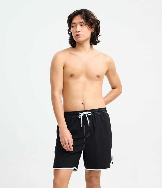 Bermuda de Banho em Tecido Sintético com Listra Contrastante Preto