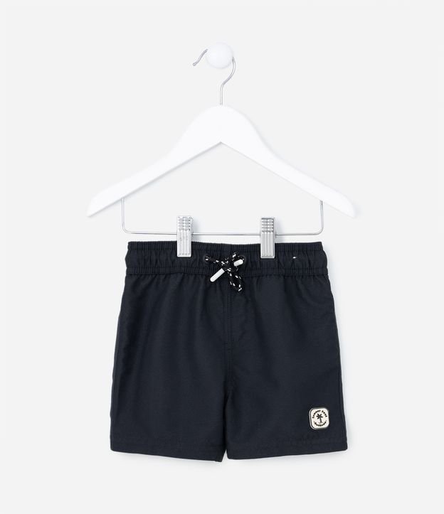 Bermuda de Banho Infantil com Etiqueta Emborrachada - Tam 1 a 5 anos Preto