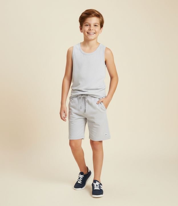 Bermuda de Banho Infantil com Etiqueta Emborrachada - Tam 5 a 14 anos Azul Acinzentado