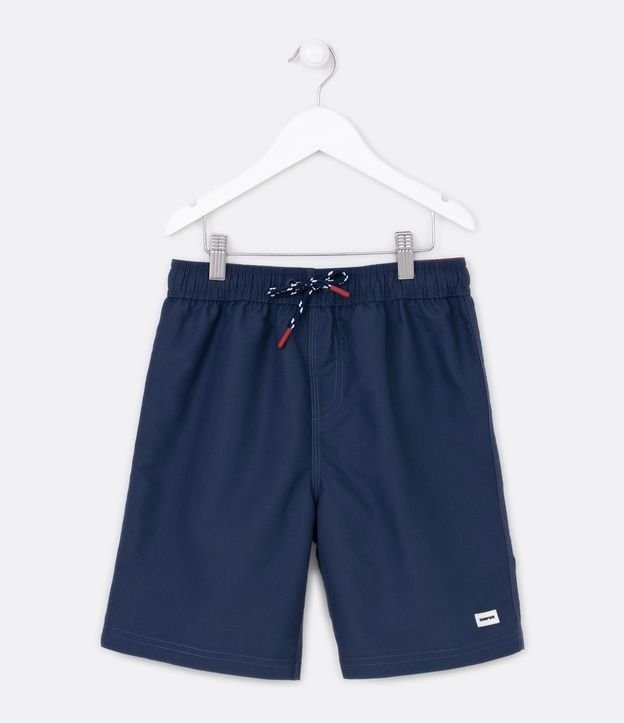 Bermuda de Banho Infantil com Etiqueta Emborrachada - Tam 5 a 14 anos Azul Escuro